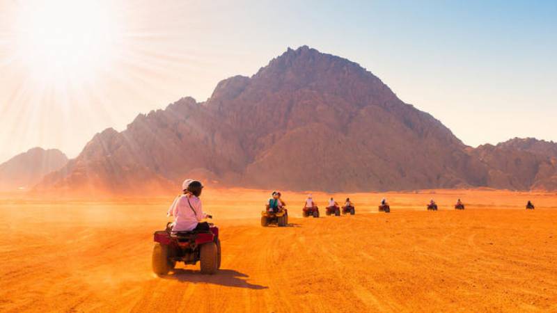 Starten Sie Ihre unvergessliche Hurghada Wüstensafari mit der Abholung vom Hotel und dem Transfer zu den Quads. Nach einer kurzen Einführung und Testfahrt geht es los zu einer aufregenden Tour durch die atemberaubenden Sanddünen.